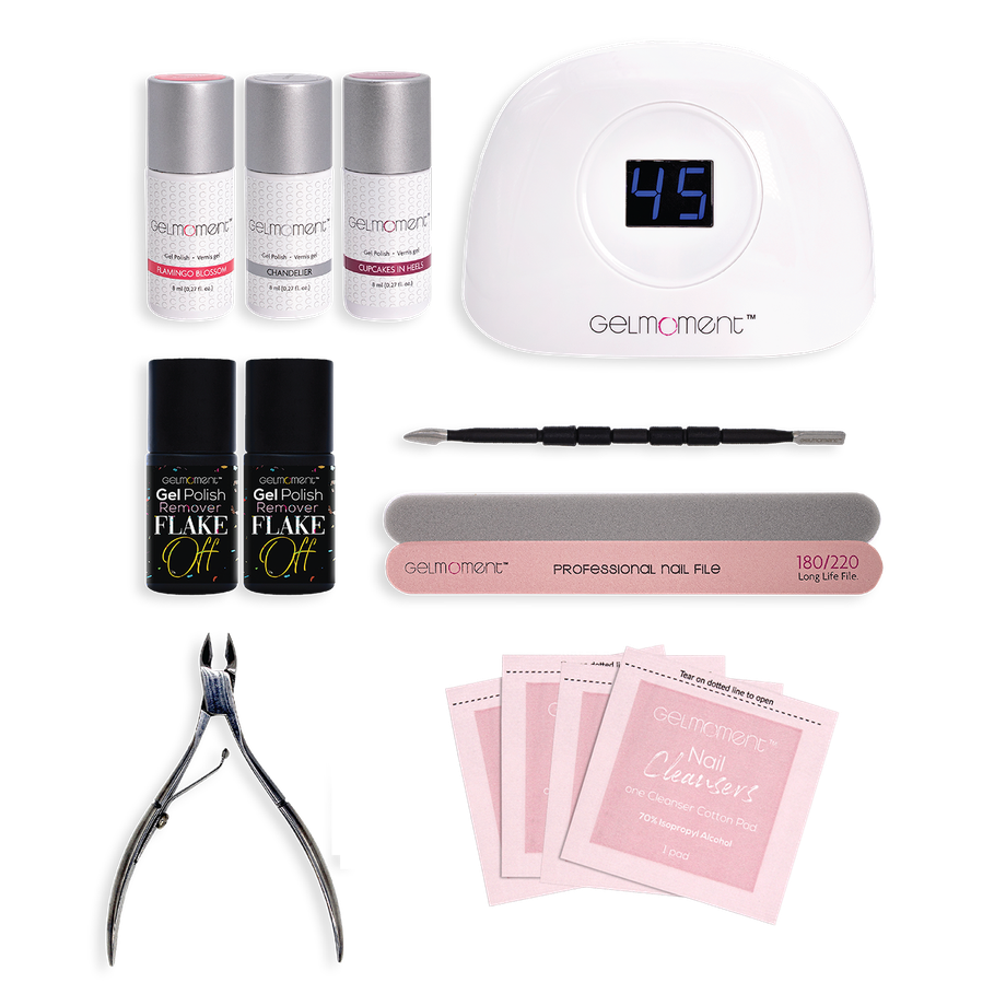 The Deluxe Customer Kit is designed for those who are comfortable in applying GelMoment Gel Nail Polish and are ready to use our Deluxe Four Finger Lamp, which works by automatic sensor!
